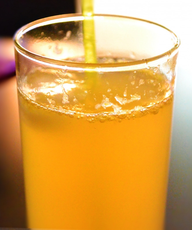 Mettez les glaçons, le jus d'orange, le jus de citron et l'angostura dans un shaker