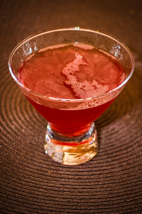 - Frappez et passez (en filtrant les glaçons) dans un verre à martini rafraichi
